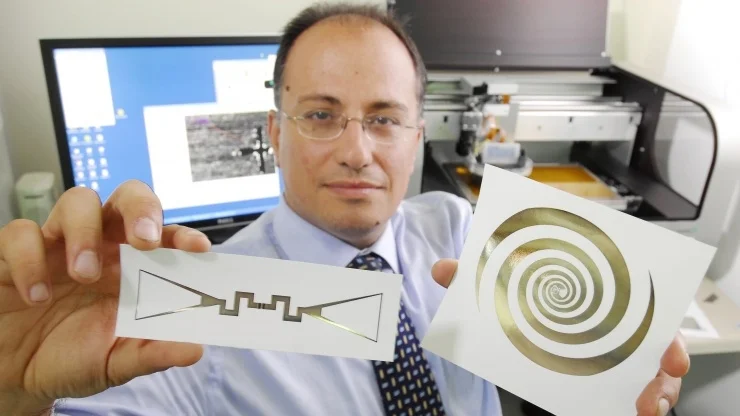 Ambient electromagnetic energy exists all around us, emitted from sources such as television transmitters, mobile phone networks and satellite communication systems. A team of researchers at Georgia Tech School of Electrical and Computer Engineering are developing a multitude of devices for harnessing this ambient electromagnetic energy. The research team are creating an energy scavenging functionality by using inkjet technology to combine sensors and antenna, all printed on paper or flexible polymer. While paper based sensors tend to function at frequencies of around 100-200 megahertz, polymer based sensors tend can function at up to around 15-60 gigahertz. The production process involves inkjet-dispensing an emulsion of silver nanoparticles to create self powering wireless sensors. These devices capture ambient energy transmitted from communications devices, convert it from AC to DC and then store it in batteries or capacitors. The frequencies which can be scavenged by these devices range from around 100 megahertz to 15 gigahertz.