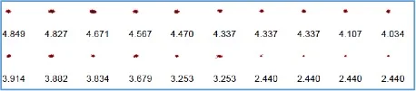 Figure 3. Over-grains detected by Dynamic Image Analysis, with size in micrometer, which were not detected by the laser measurement.